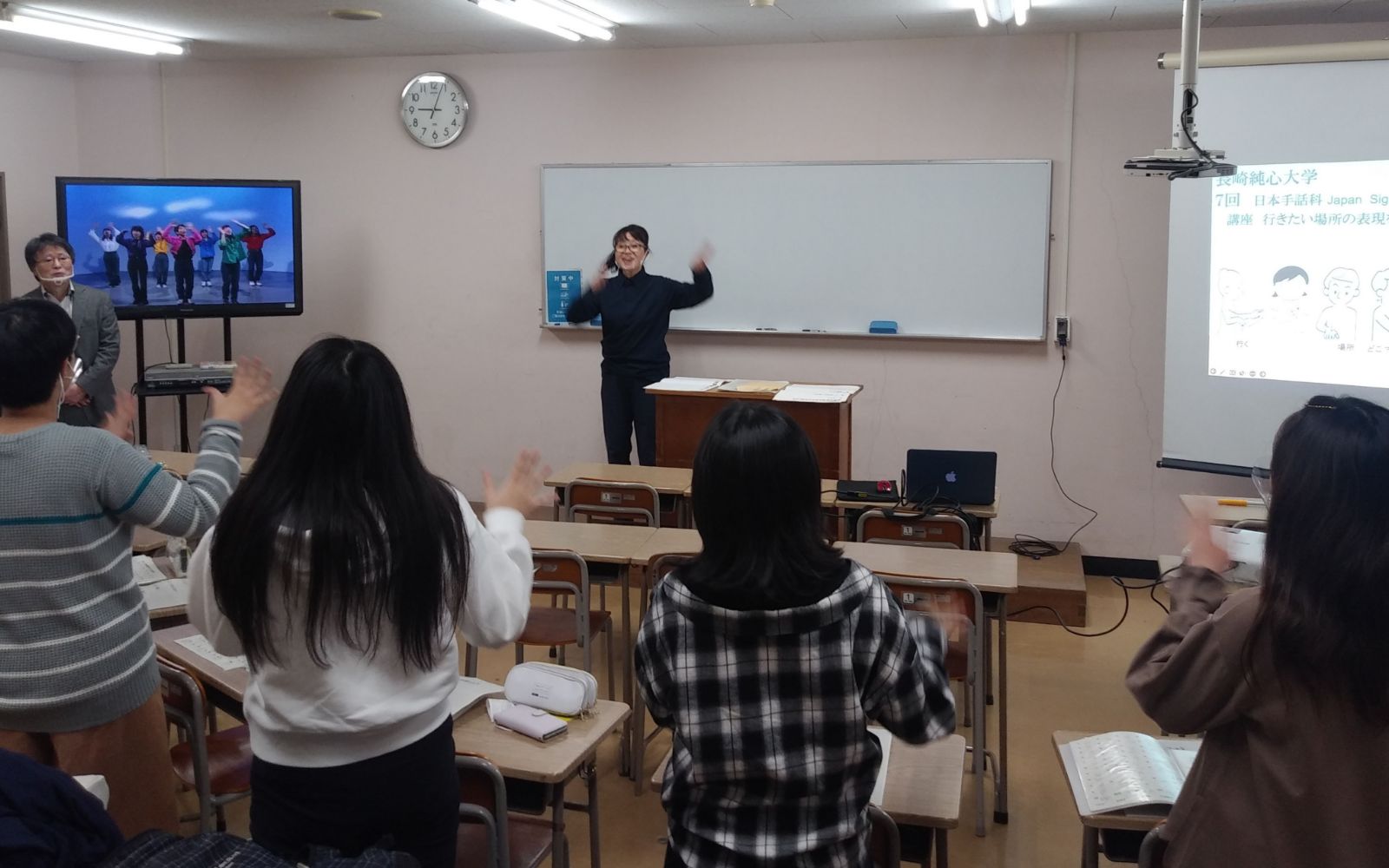 聞こえる人が手話を学ぶ機会として、地域の手話講座がありますが、近年では手話を学べる大学も出てきました。その一つが、長崎市にある長崎純心大学です。10年ほど前から、日本文学を研究している長野秀樹教授が中心となって、正規のカリキュラムとして、手話講座を開講しています。