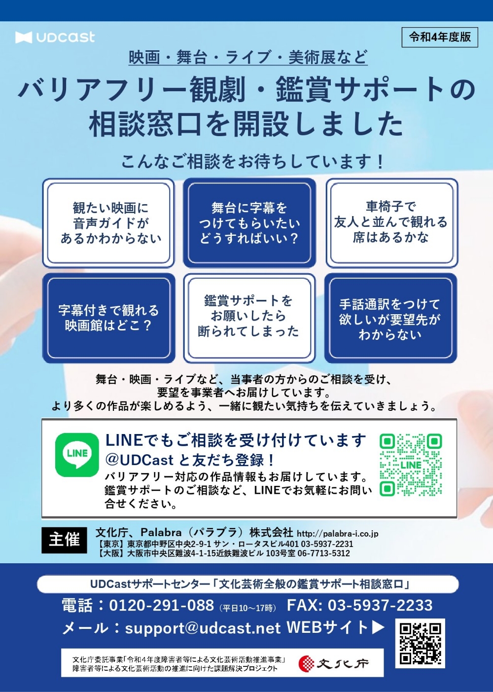 意思の疎通に支援が必要な人たちにとって、行政機関や病院などで正しい情報が得られ、自分の意思を伝えることは、生活を送る上で欠かせないものです。しかし、それだけで十分だと思う人はいないでしょう。人が充実した人生を送るには、文化や芸術にふれられる環境も大切です。しかし、映画や映像を鑑賞する際に困難を抱えてしまう人への情報保障はまだ十分ではありません。そうした人々のためにバリアフリーの日本語字幕や音声ガイド、手話映像を提供しているPalabra株式会社の山上庄子さんにお話を伺いました。