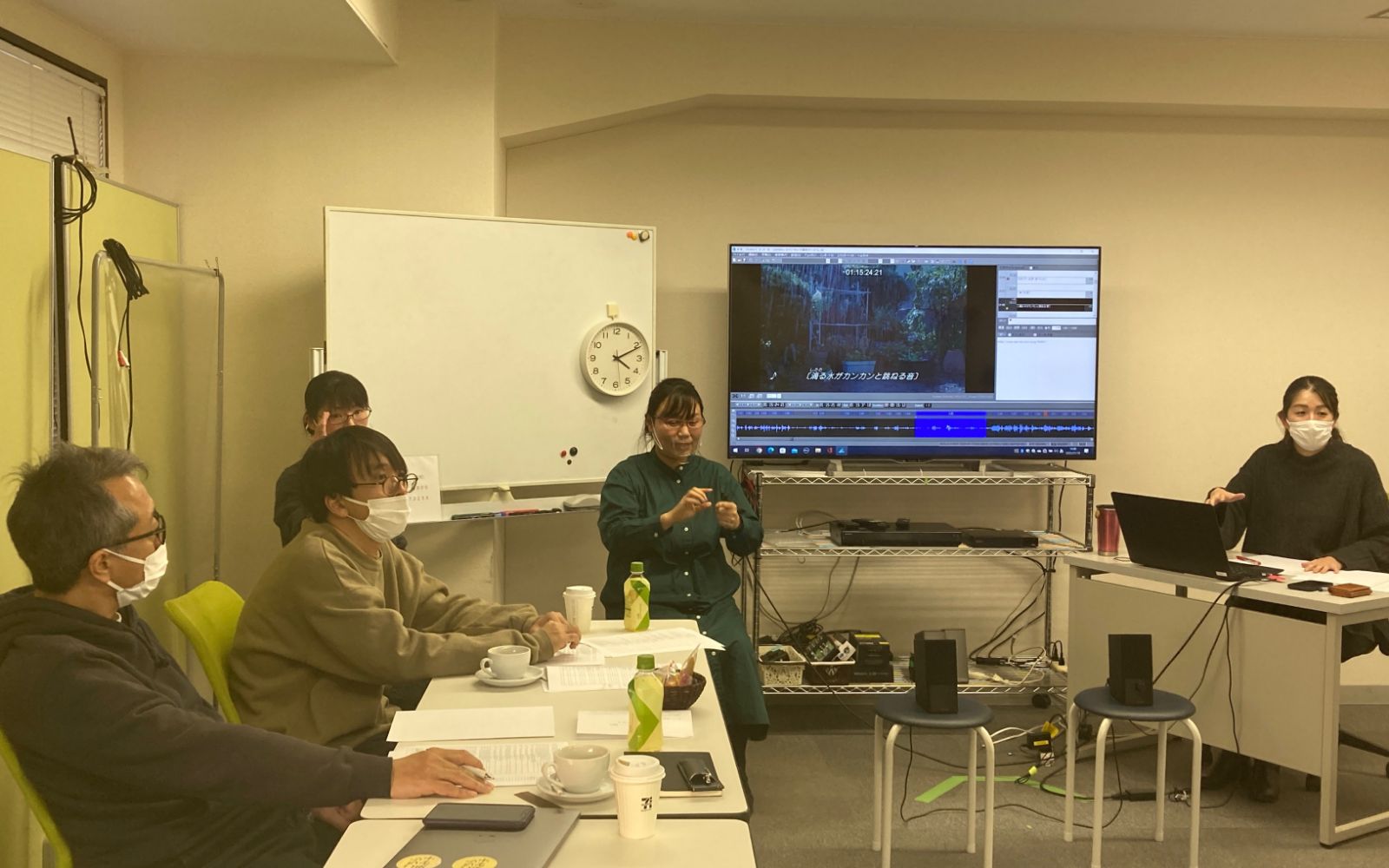 そうはいっても映像作品のバリアフリー化は手間がかかる作業です。音声ガイドやバリアフリー字幕の作成は、ただ台本のト書きを音声にしたり、セリフを文字にしたりするだけではありません。表情や状況、効果音の説明などのほか、登場人物の心理描写やシーンの解釈も必要になります。この「翻訳」作業には、最終的な収録や仕上げまで含めると映画1本あたり1カ月から1カ月半もかかるそうです。さらにPalabra社では、完成前に実際に字幕や音声ガイドを利用する視聴覚障害の当事者と、監督やプロデューサーなど映画製作側に参加してもらい、必ず「モニター検討会」を開いているそうです。